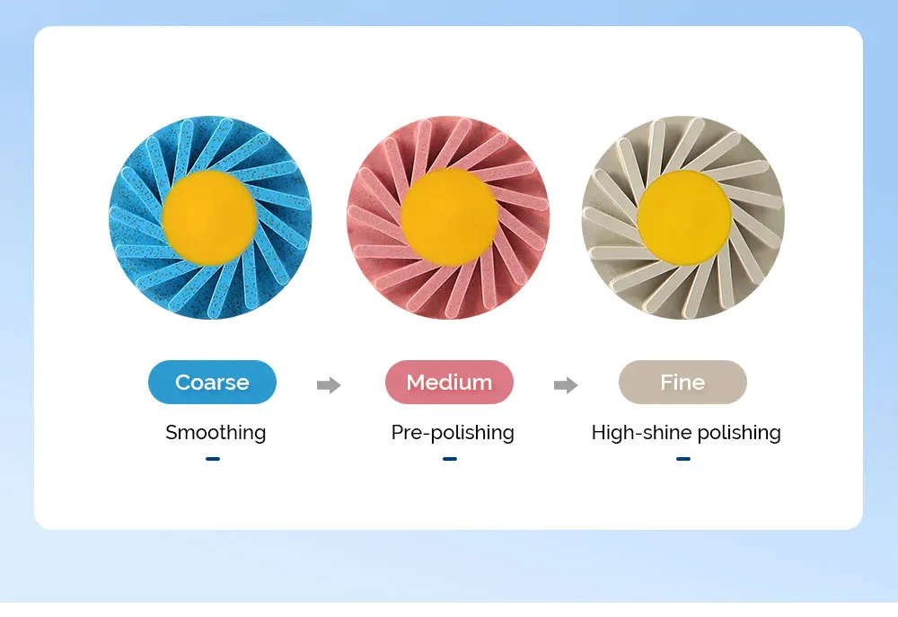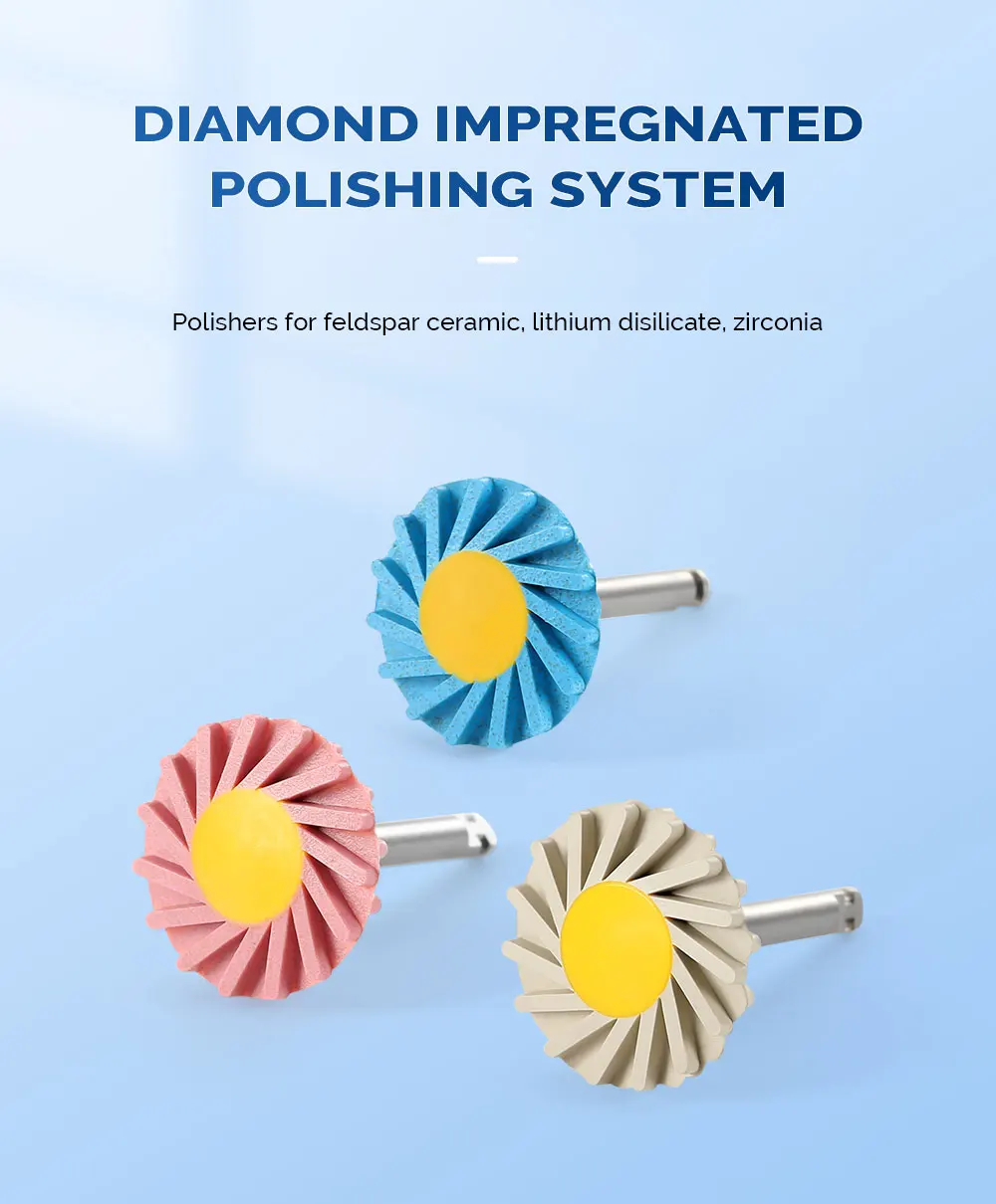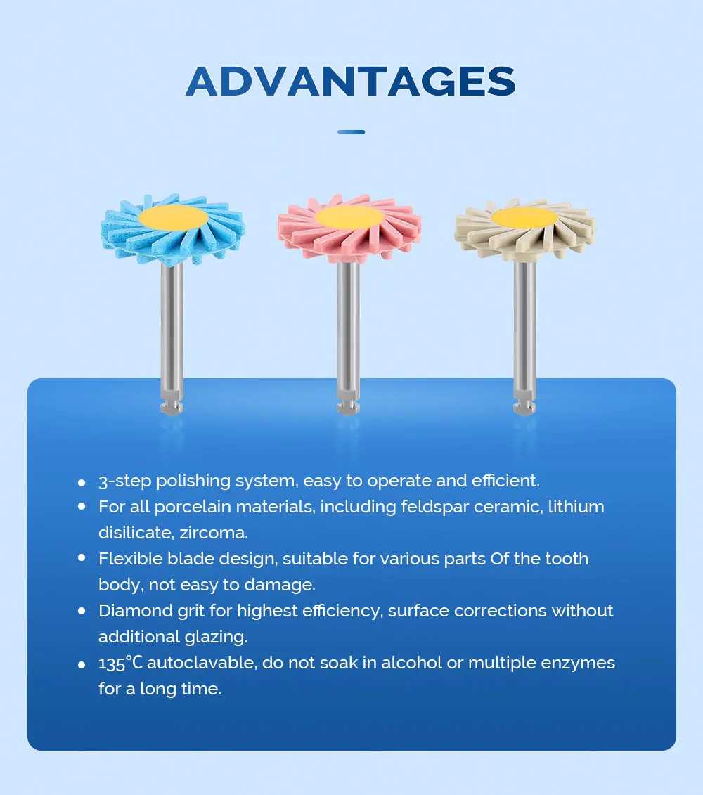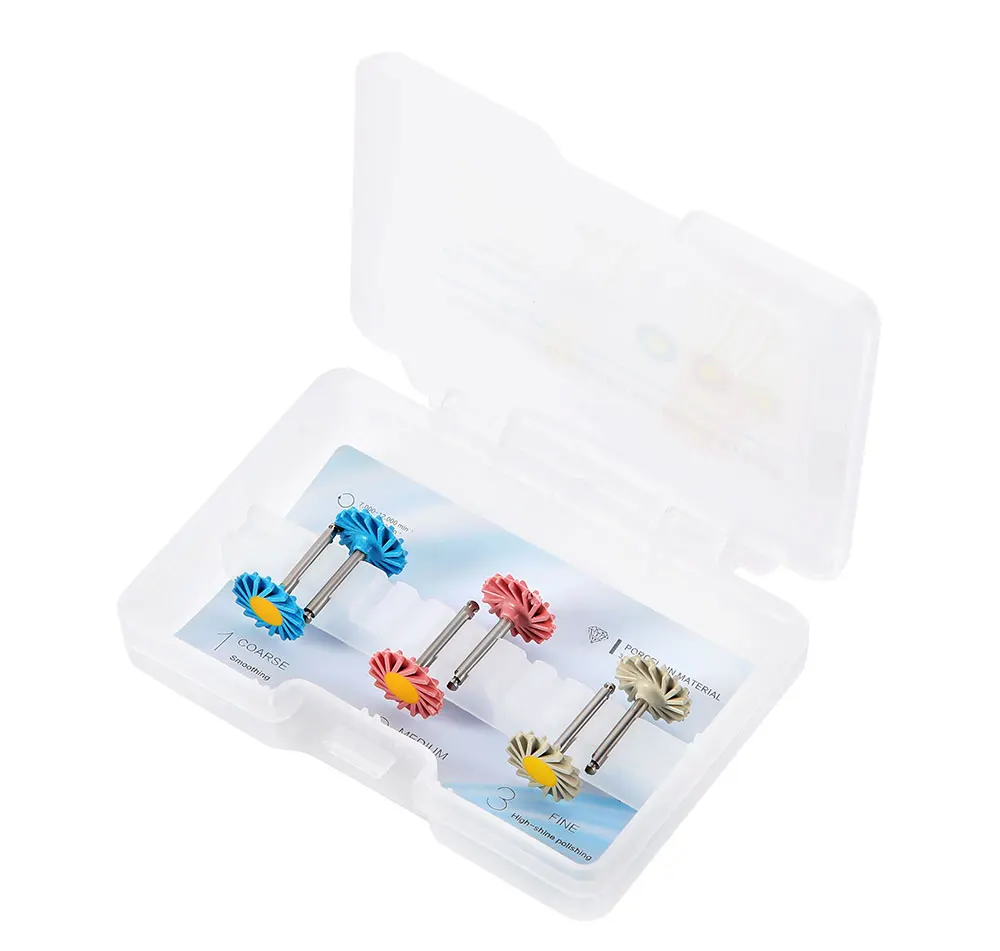 AZDENT 6pcs/set Dental Rubber Polisher Composite Resin Diamond Polishing System RA Disc Kit 14mm Wheel Spiral Flex Burs Tools