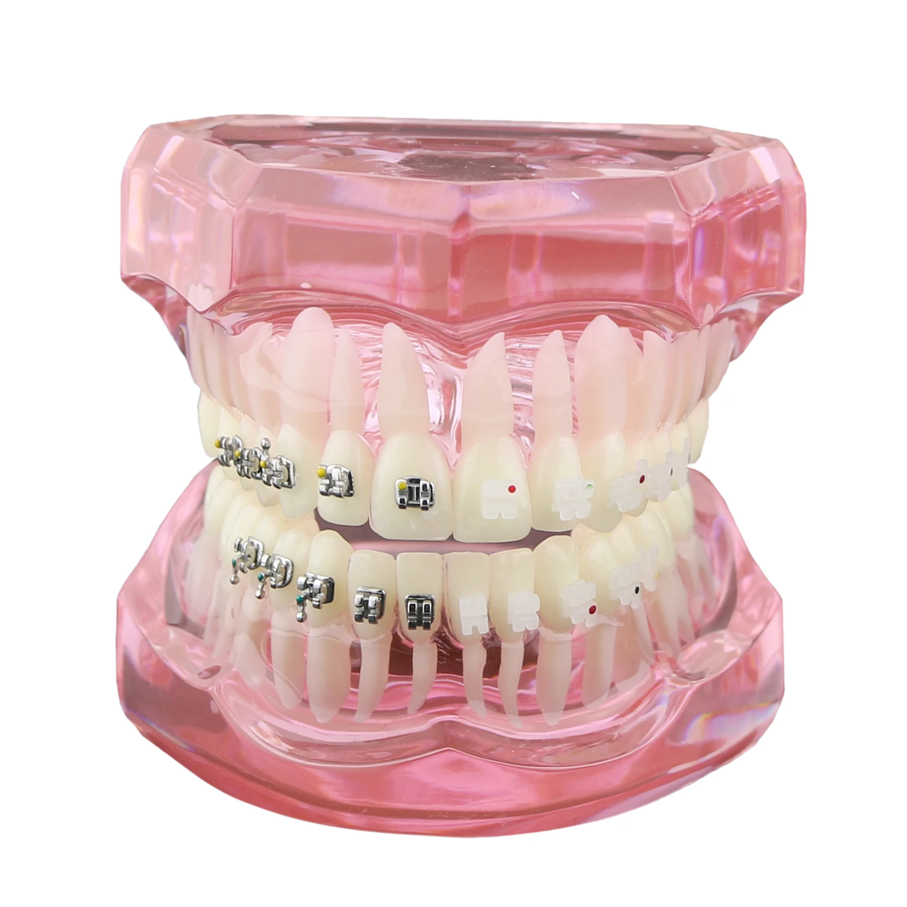 تقويم الأسنان نموذج Typodont مع أقواس معدنية سيراميك الأقواس مقارنة دراسة الممارسة التعليمية